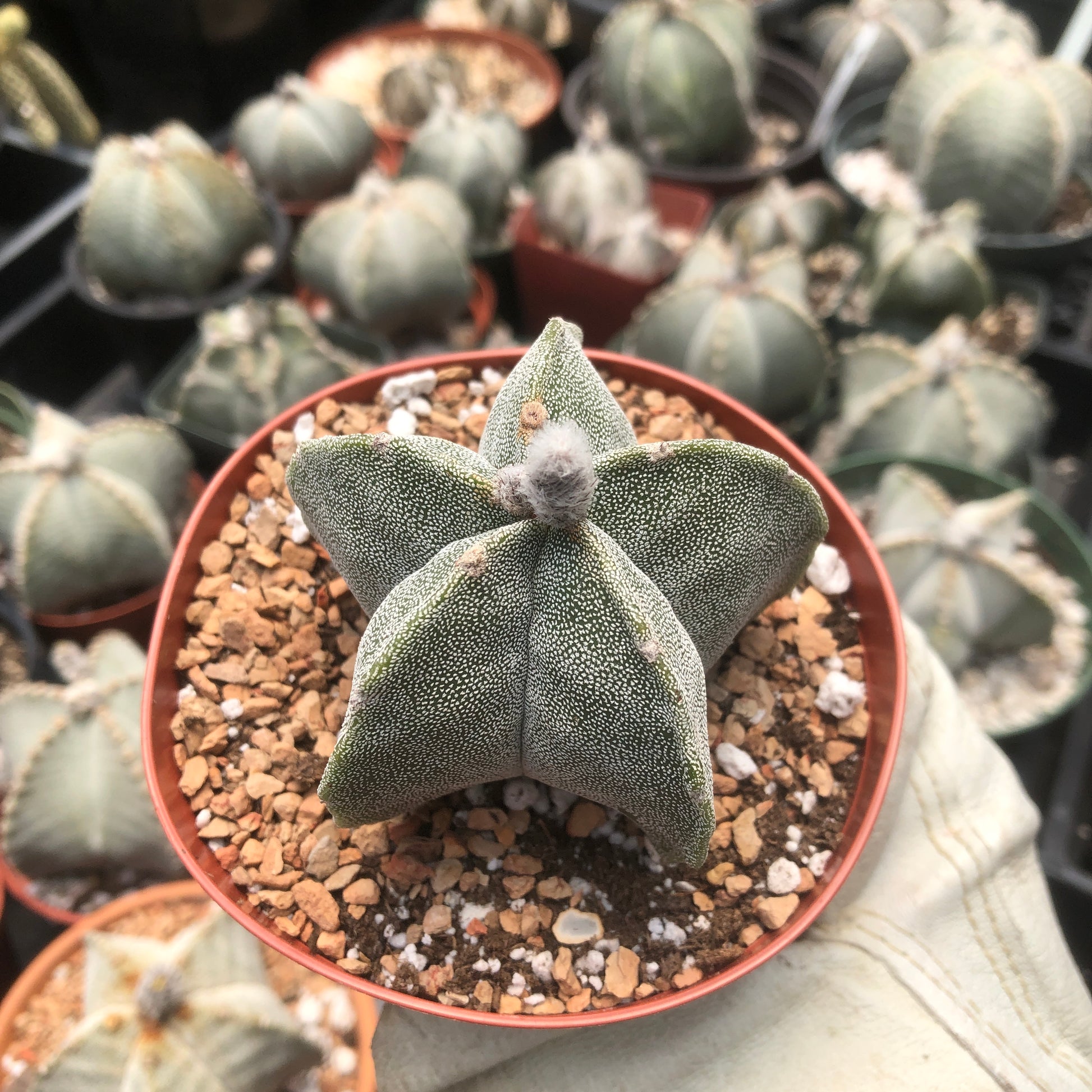 Looking for a unique and striking cactus to add to your succulent collection? Look no further than Astrophytum Myriostigma! This slow-growing cactus is renowned for its star shape and intricate white or yellow dotted patterns that adorn its textured skin.