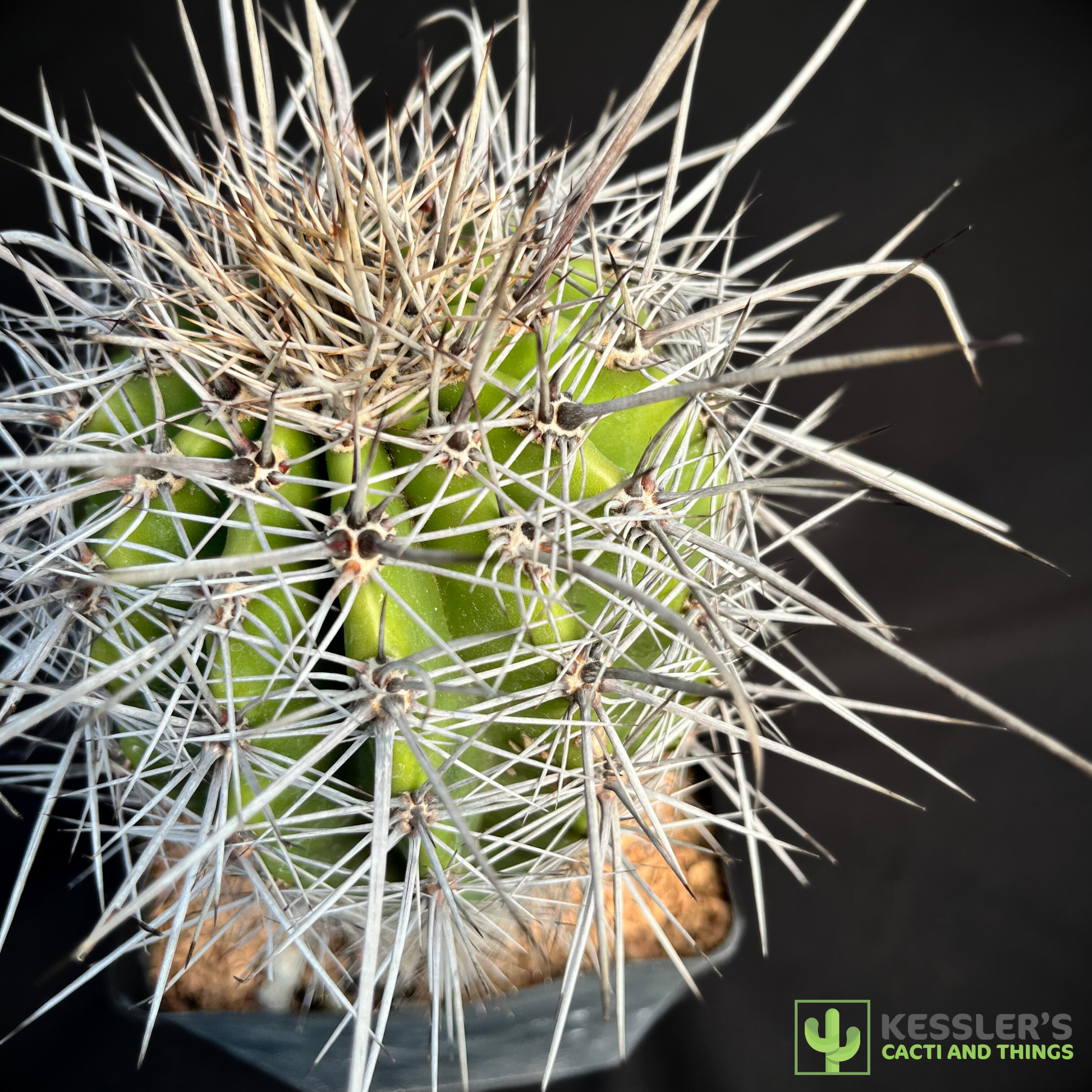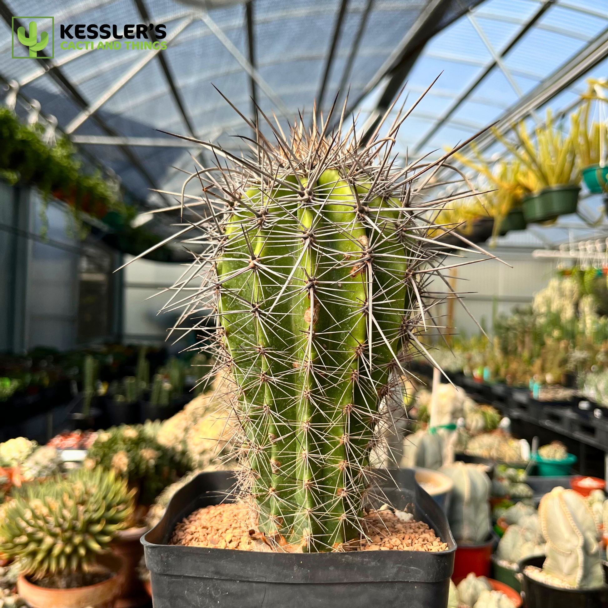 Water deeply but infrequently, allowing the soil to dry out completely between waterings. Reduce watering during the winter months when the cactus enters dormancy. Once established, it is highly drought-tolerant and thrives with minimal water.