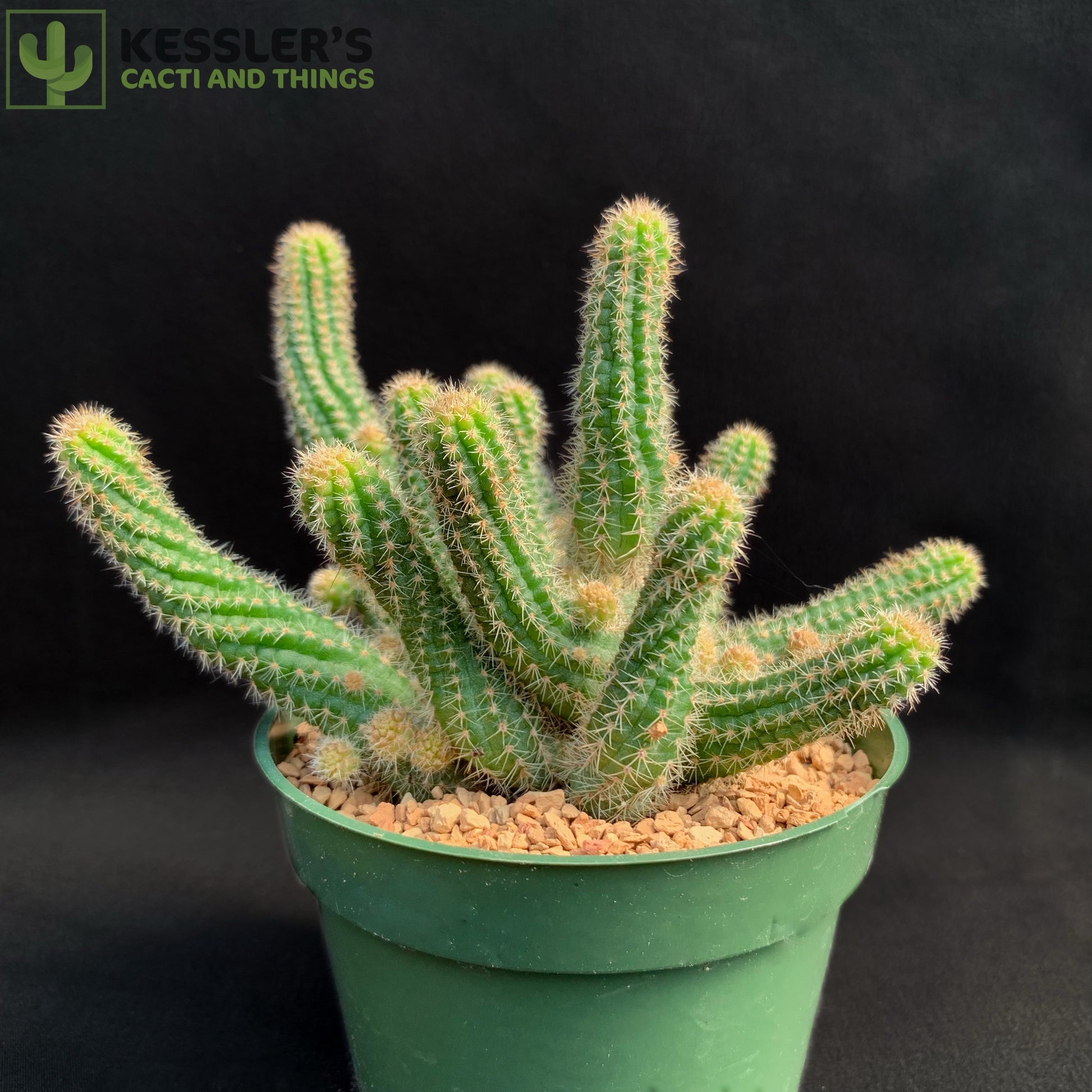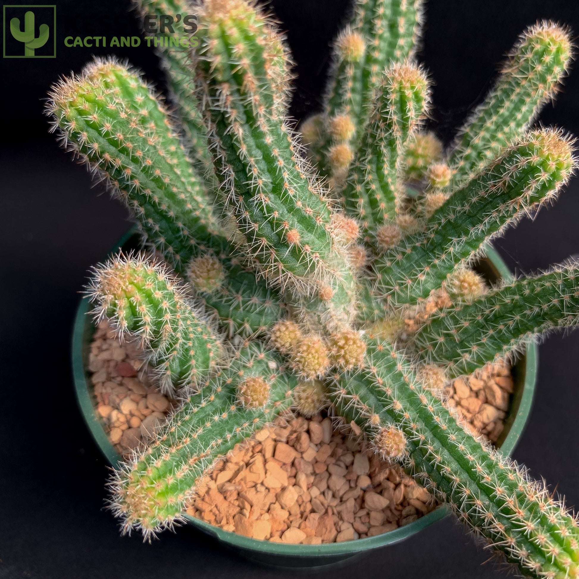 Chamaecereus silvestrii, affectionately known as the Peanut Cactus, is a charming and fast-growing clumper that forms dense mats of finger-like stems, each about the size and shape of a peanut. These bright green stems are soft-spined and slightly ribbed, making this cactus both touchable and totally adorable.