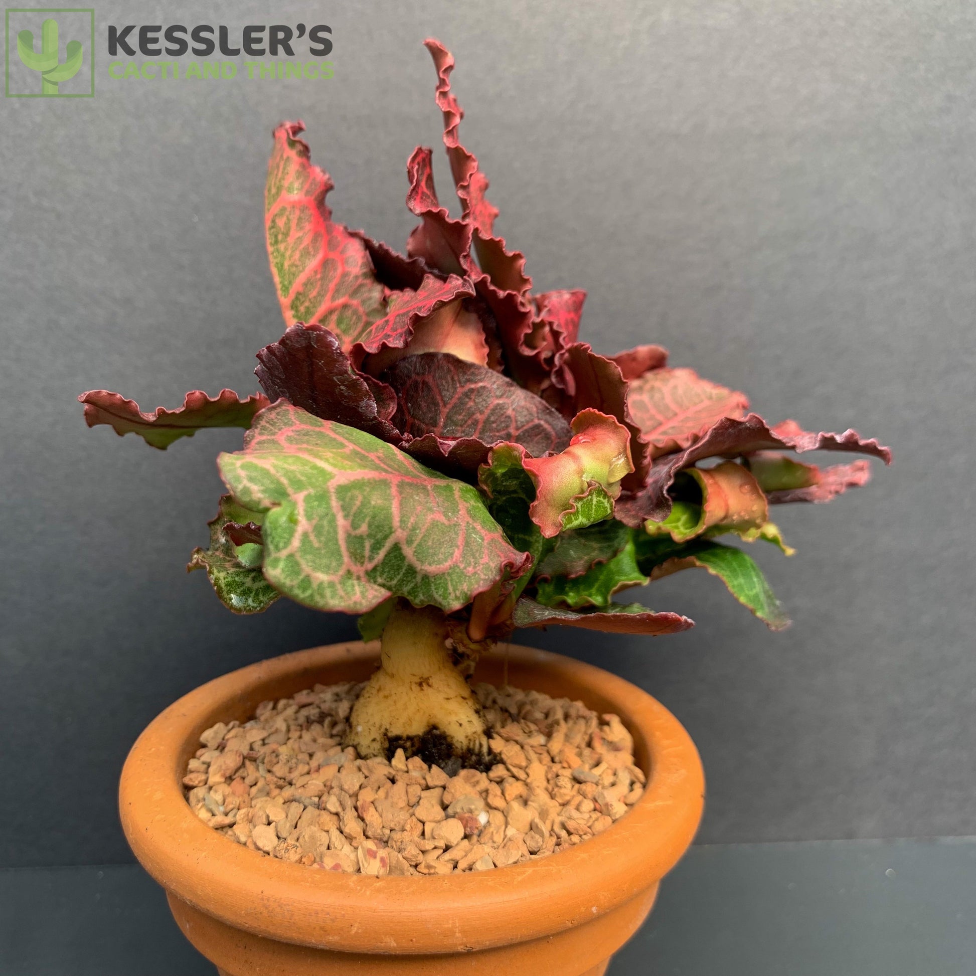 Compact and slow-growing, this plant forms a low-growing rosette or clump and occasionally produces tiny maroon cyathia (flowers). It’s a true collector’s plant—perfect for succulent lovers, bonsai stylists, and caudex enthusiasts alike.