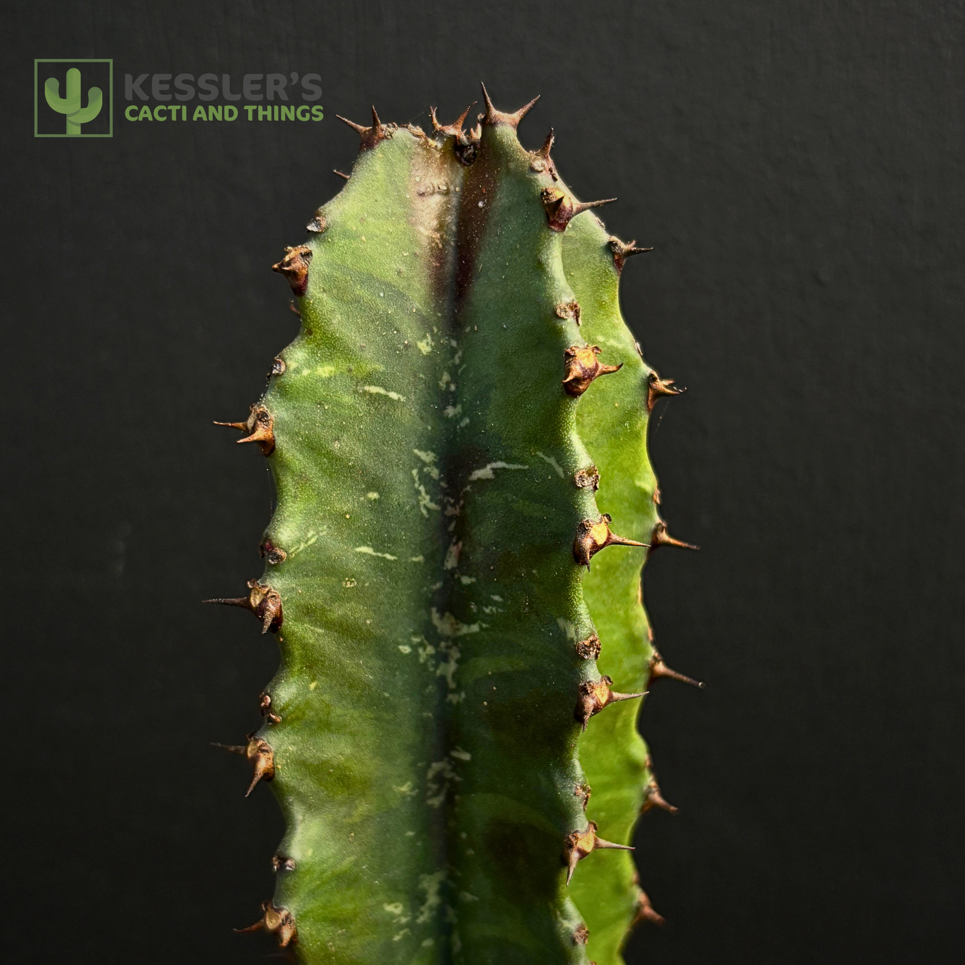Native to southern Africa, Euphorbia ingens has smooth, bright green stems with 3–5 prominent ribs lined with short spines. It’s often mistaken for a cactus due to its form, but like all Euphorbias, it produces a latex sap when cut or damaged. In full sun, the stems may take on a subtle bronzed or reddish tint, especially during dry spells.