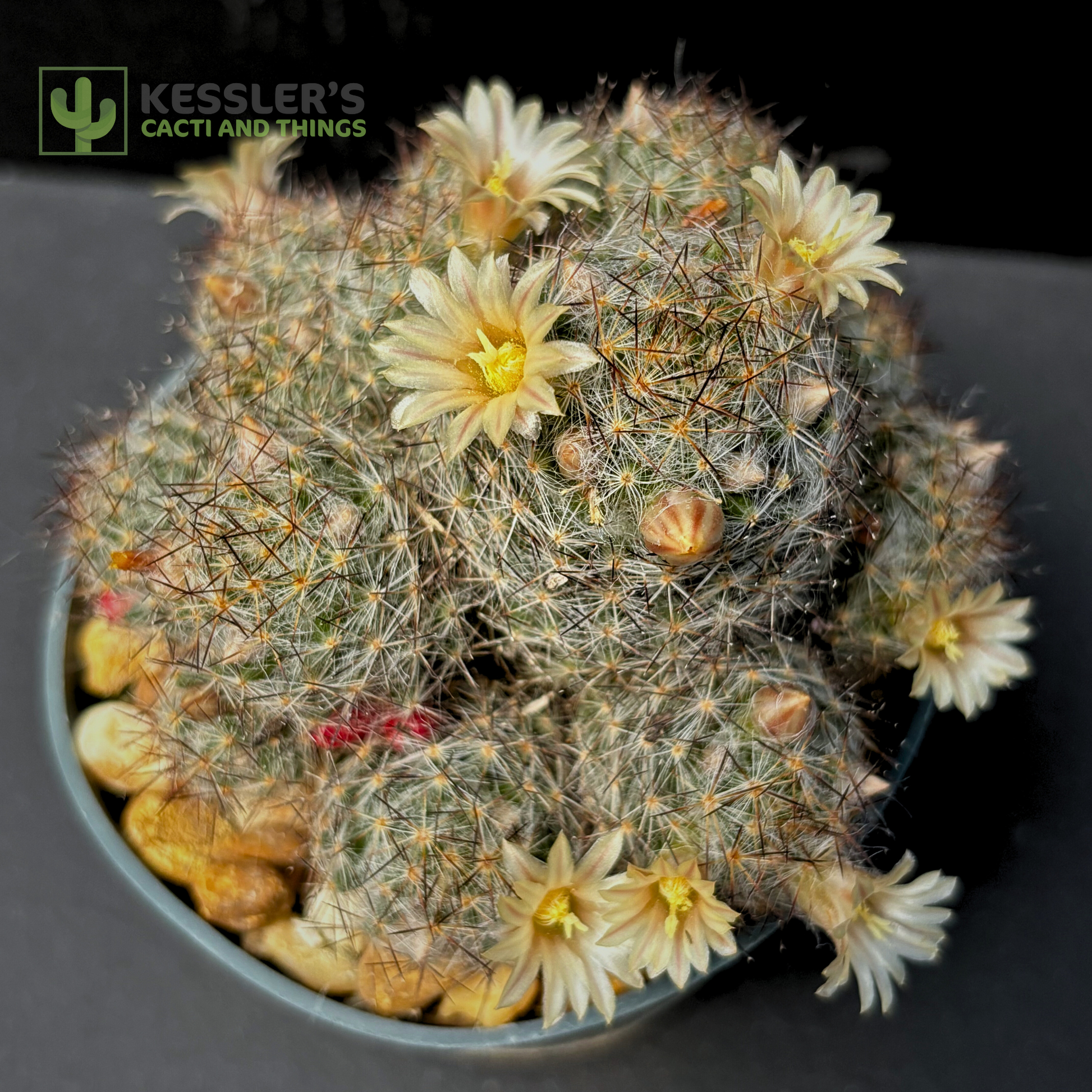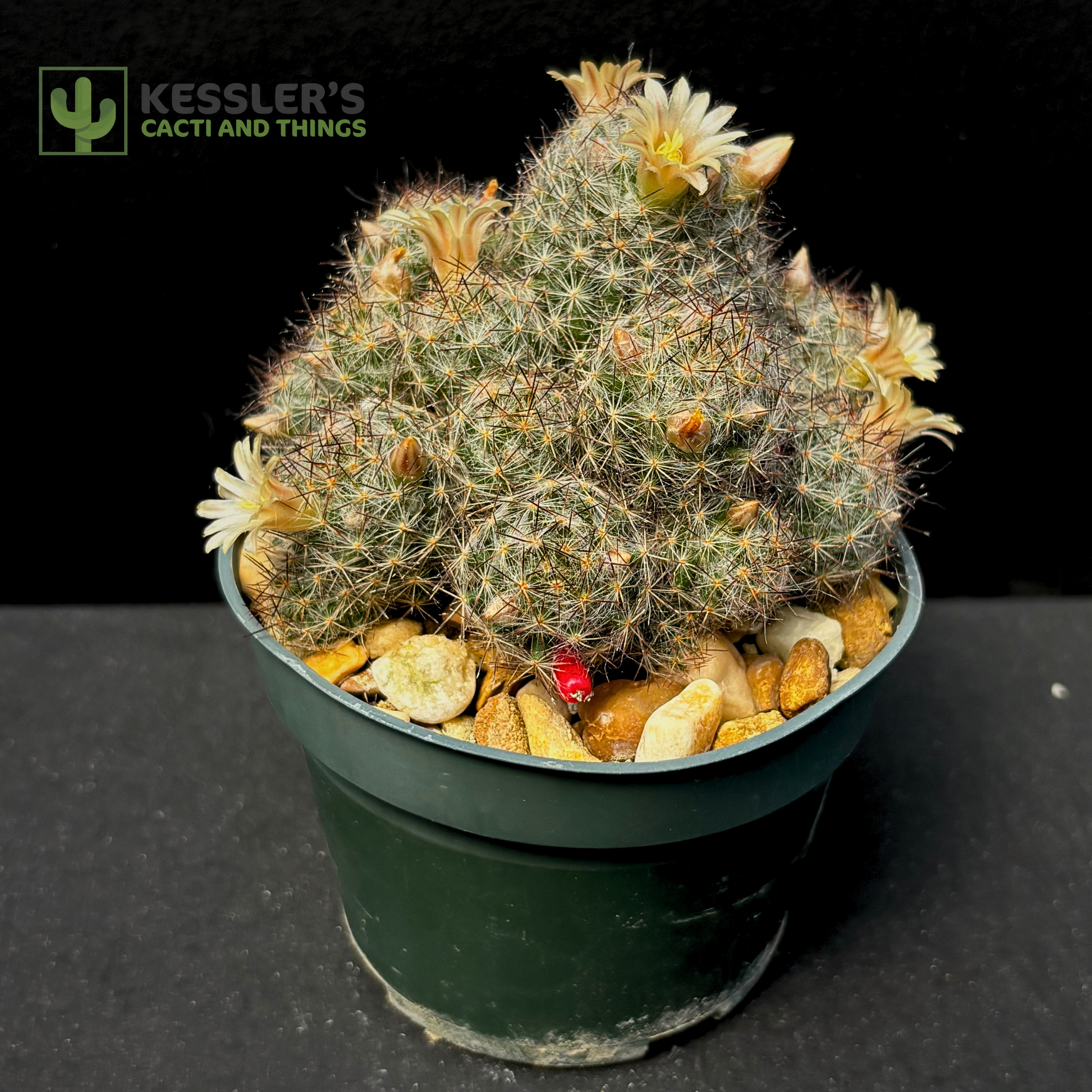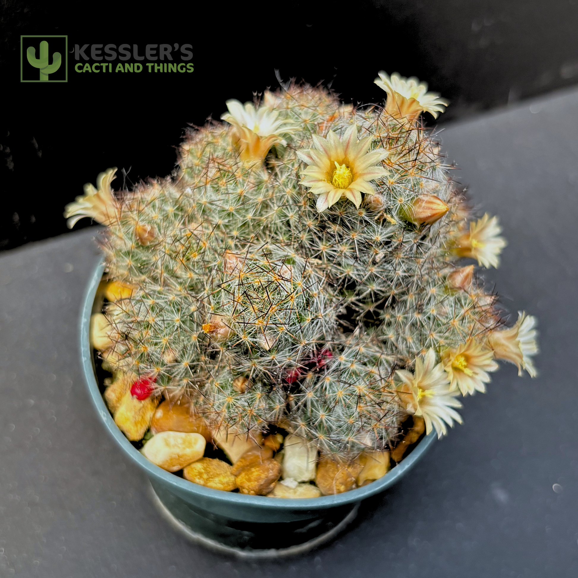 Native to parts of the southwestern U.S., Mexico, and the Caribbean, this easy-care cactus bursts into bloom with dainty cream to pale yellow flowers, often followed by bright red fruit that adds to its charm. Whether you’re just starting your cactus collection or looking to fill in gaps with texture and color, Mammillaria prolifera delivers.