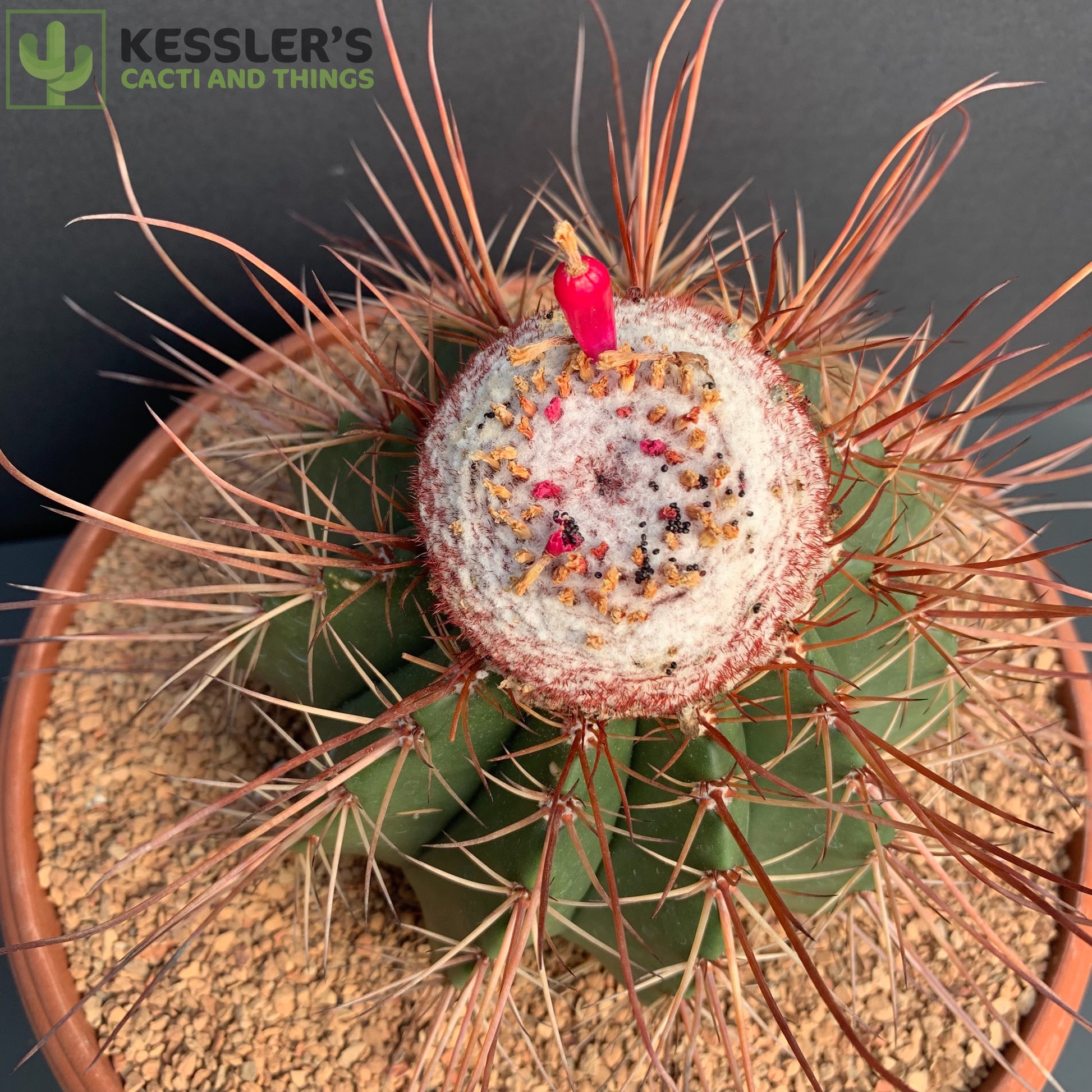 • Woolly Cephalium – Reddish bristled crown develops at maturity and produces soft pink blooms
