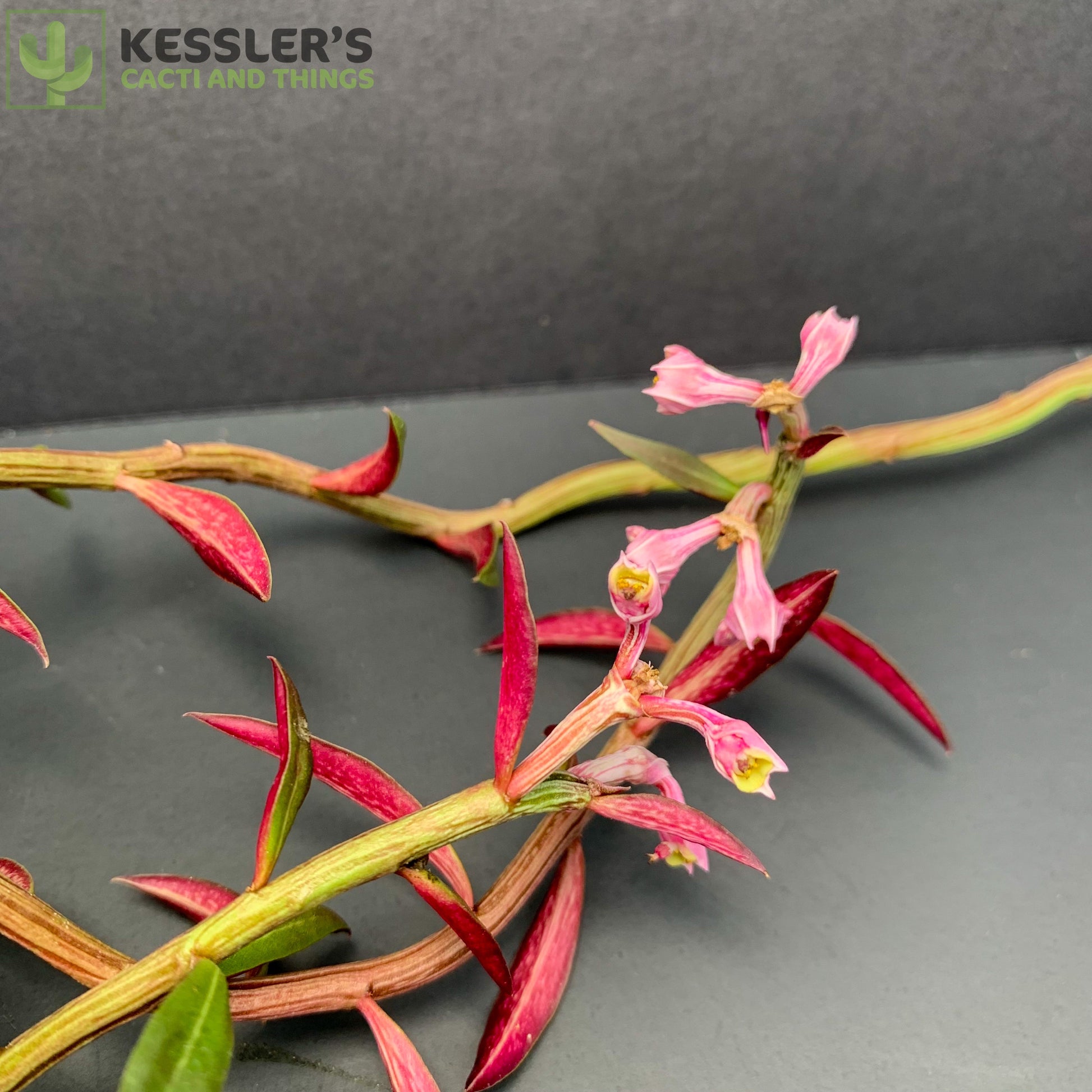 Discover the unique beauty and resilience of Monadenium Rubellum. This exotic plant boasts intricate pink and green foliage, along with delicate pink flowers all stemming from an intricate caudex or base, making it a stunning addition to any succulent garden. With its low maintenance needs, it's perfect for those looking to add a touch of color to their collection.