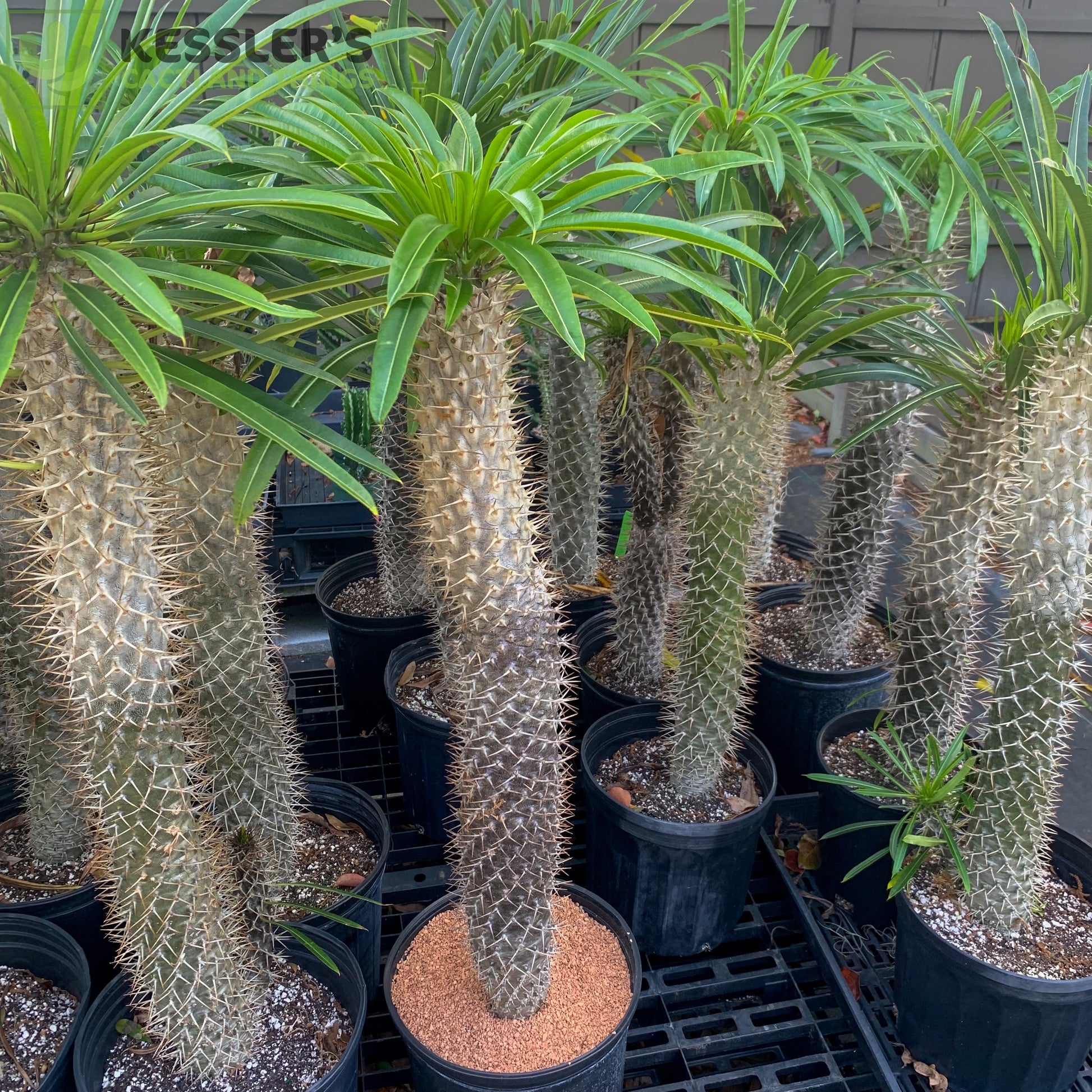 • Striking Form – Spiny trunk and palm-like leaves give it tropical drama