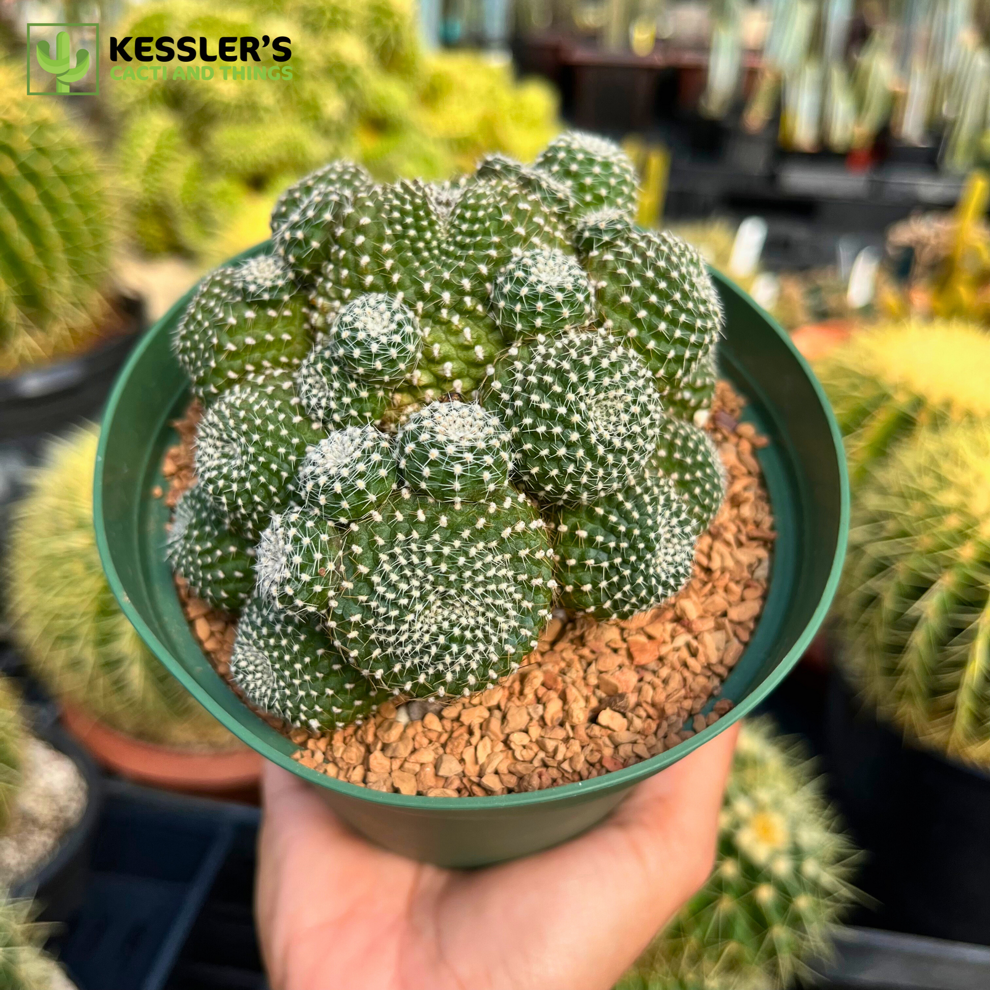 Growing to a height of just 2-3 inches, Rebutia krainziana forms small, tightly packed offsets over time, creating an attractive cluster of globes adorned with eye-catching flowers.